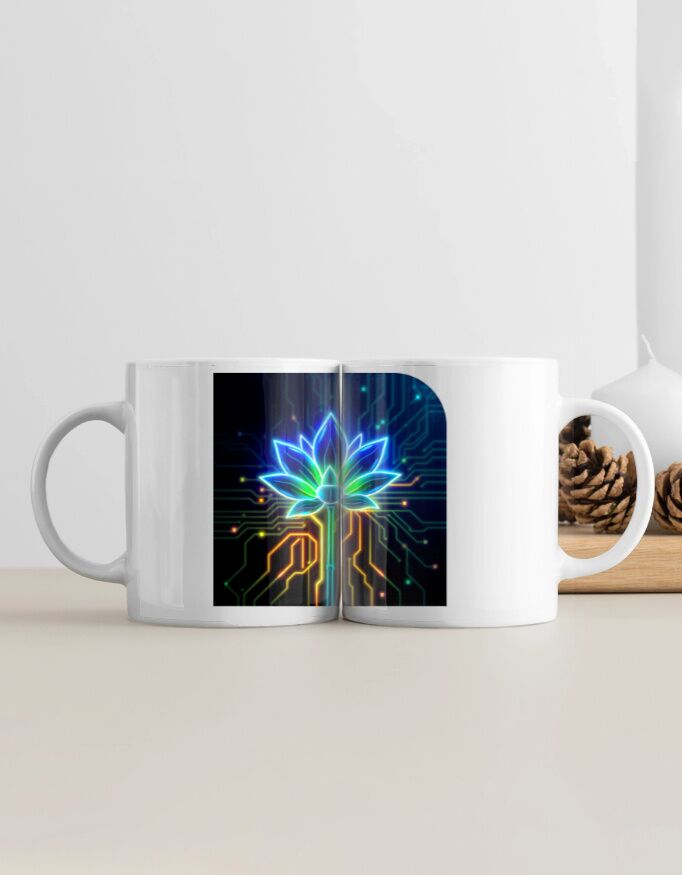 Brighten your morning with this attractive neon flower printed mug. With its modern design, it makes a great decorative piece and a great gift.
