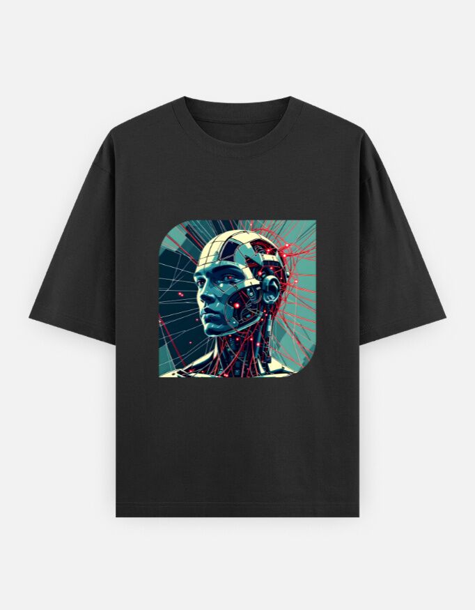 Get this attractive cyborg t-shirt featuring a futuristic cyborg. Unleash your hi-tech instincts by wearing this high-definition cyborg fashion graphic tee. The oversized fit offers a relaxed, streetwear vibe, perfect for casual outings, music festivals, or lounging at home.