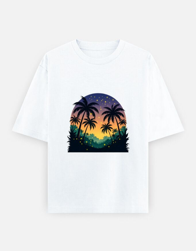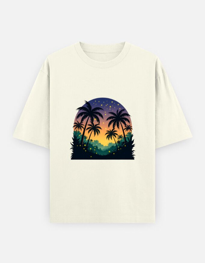 This palm trees t-shirt design captures those quiet evenings we all chase: a late-night drive down the coast, a rooftop gathering with friends, or just lying back on a terrace watching the stars sparkle above the silhouettes of tall palms. In a busy Indian life, this palm trees t-shirt becomes your little escape, your reminder to breathe.
