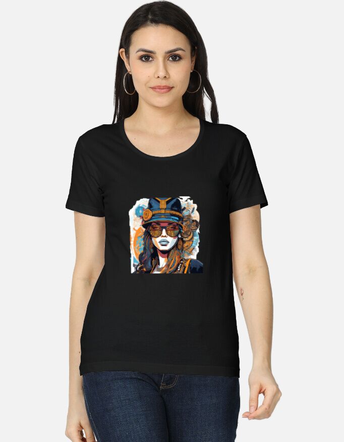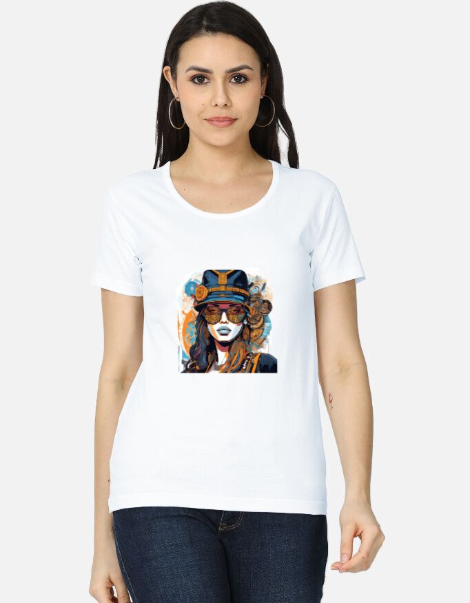Designed exclusively for the modern Indian woman, this classic tee blends comfort with effortless style. Featuring a stunning illustrated sketch of a confident woman rocking sunglasses and a trendy hat, this t-shirt captures the essence of poise and panache that defines today’s Indian diva. Crafted from soft, breathable cotton, this t-shirt is perfect for India’s diverse climates, keeping you cool and stylish whether you’re at a festive gathering, a casual day out, or lounging at home. The relaxed fit flatters every body type, making it a versatile addition to your wardrobe. Pair it with jeans, a lehenga, or even a saree for a fusion look that screams individuality.